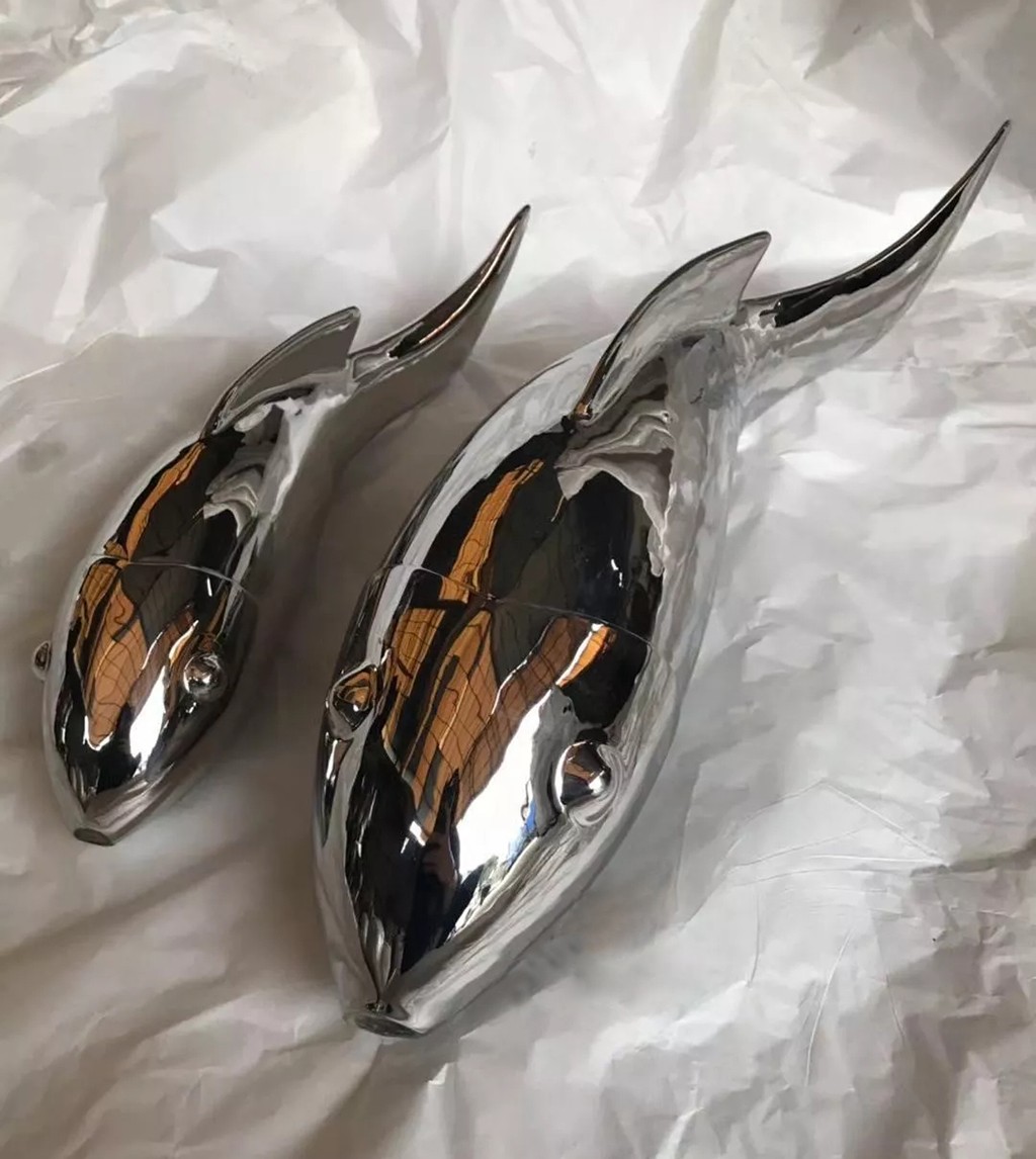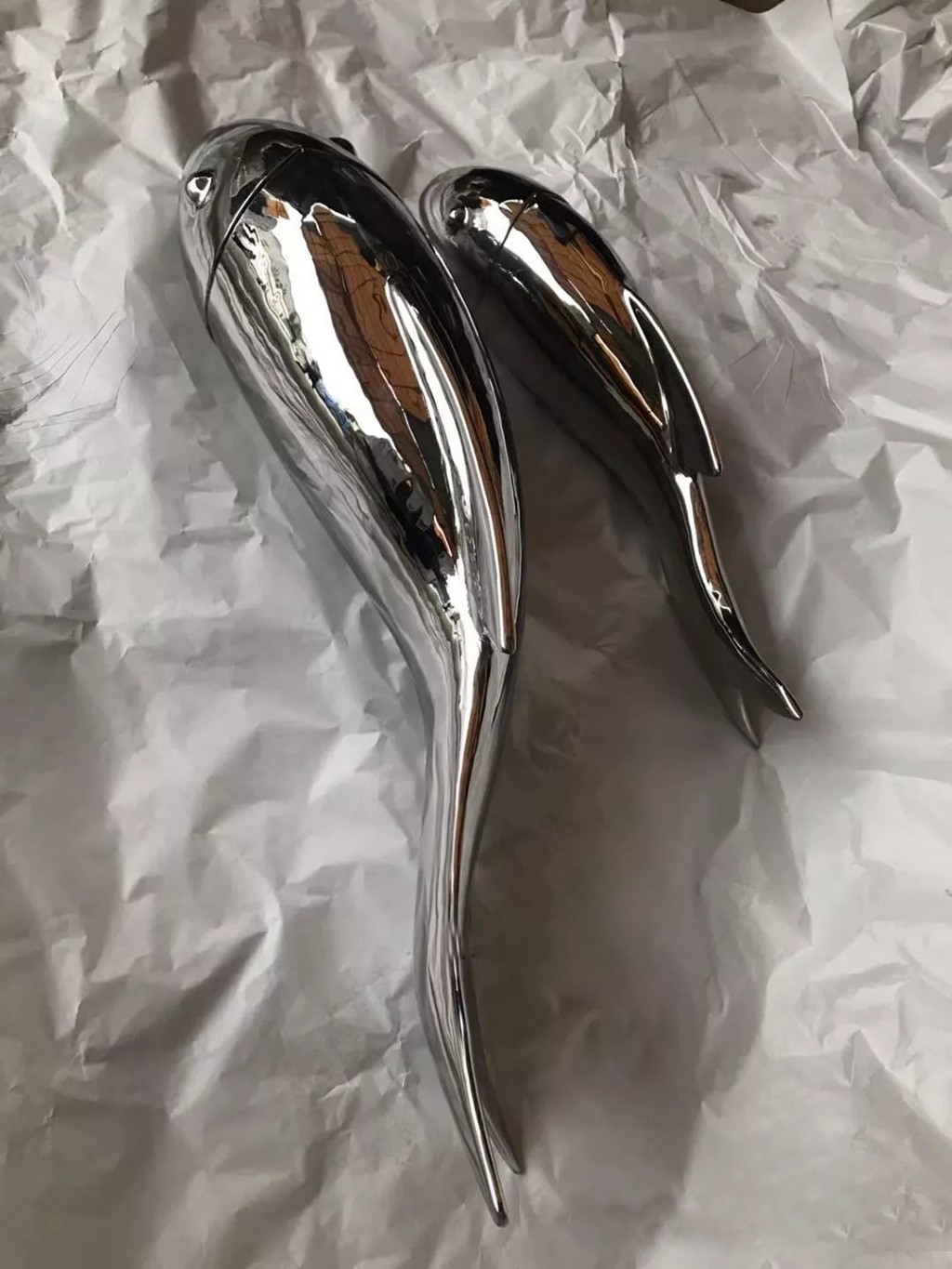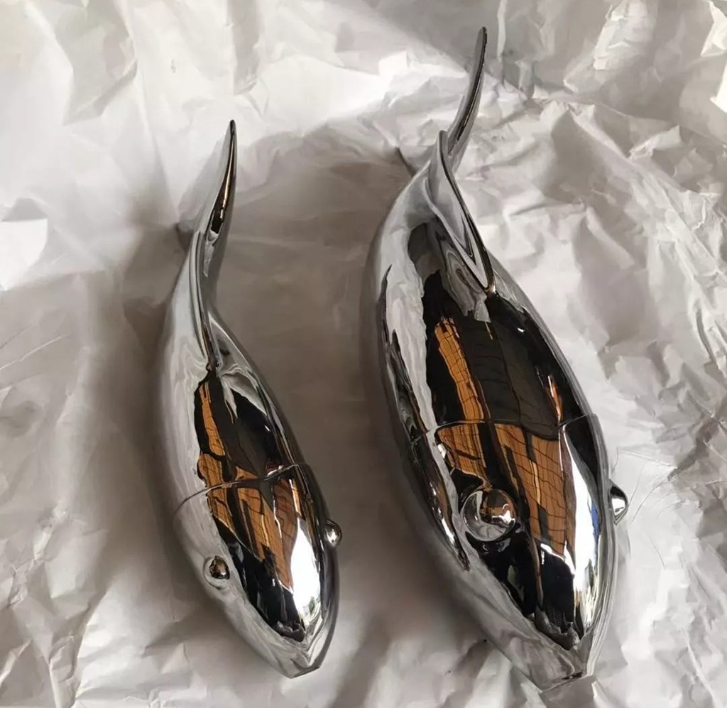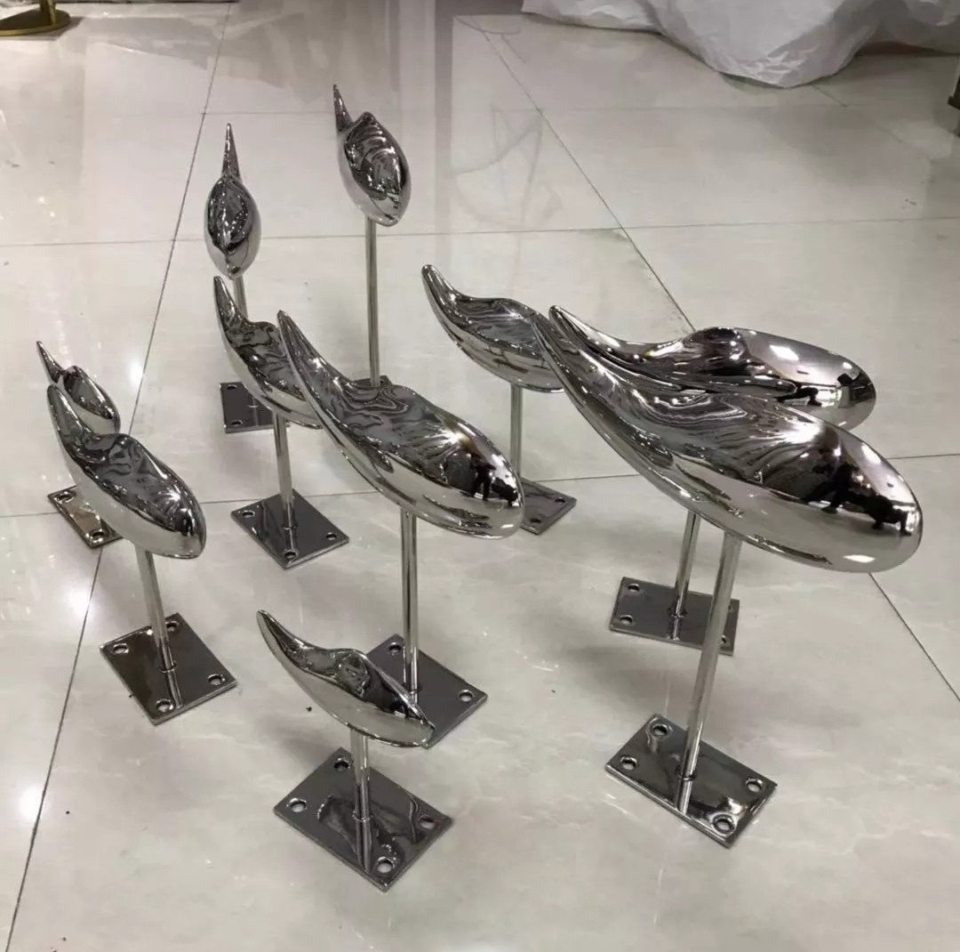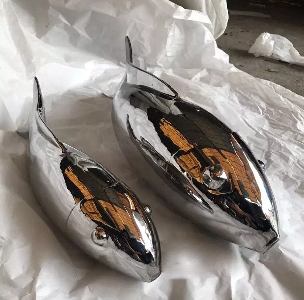 鏡面不銹鋼抽象魚雕塑、水景仿真金屬魚群雕塑擺件【美麗壯觀】