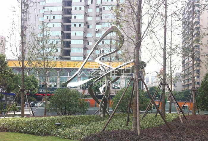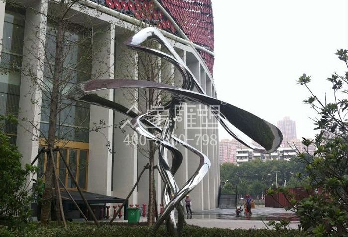 武漢不銹鋼飄帶雕塑,高六米,表面做鏡面效果。