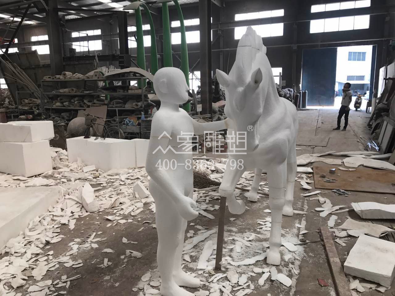 不銹鋼馬與人雕塑制作前期階段—泡沫雕階段。