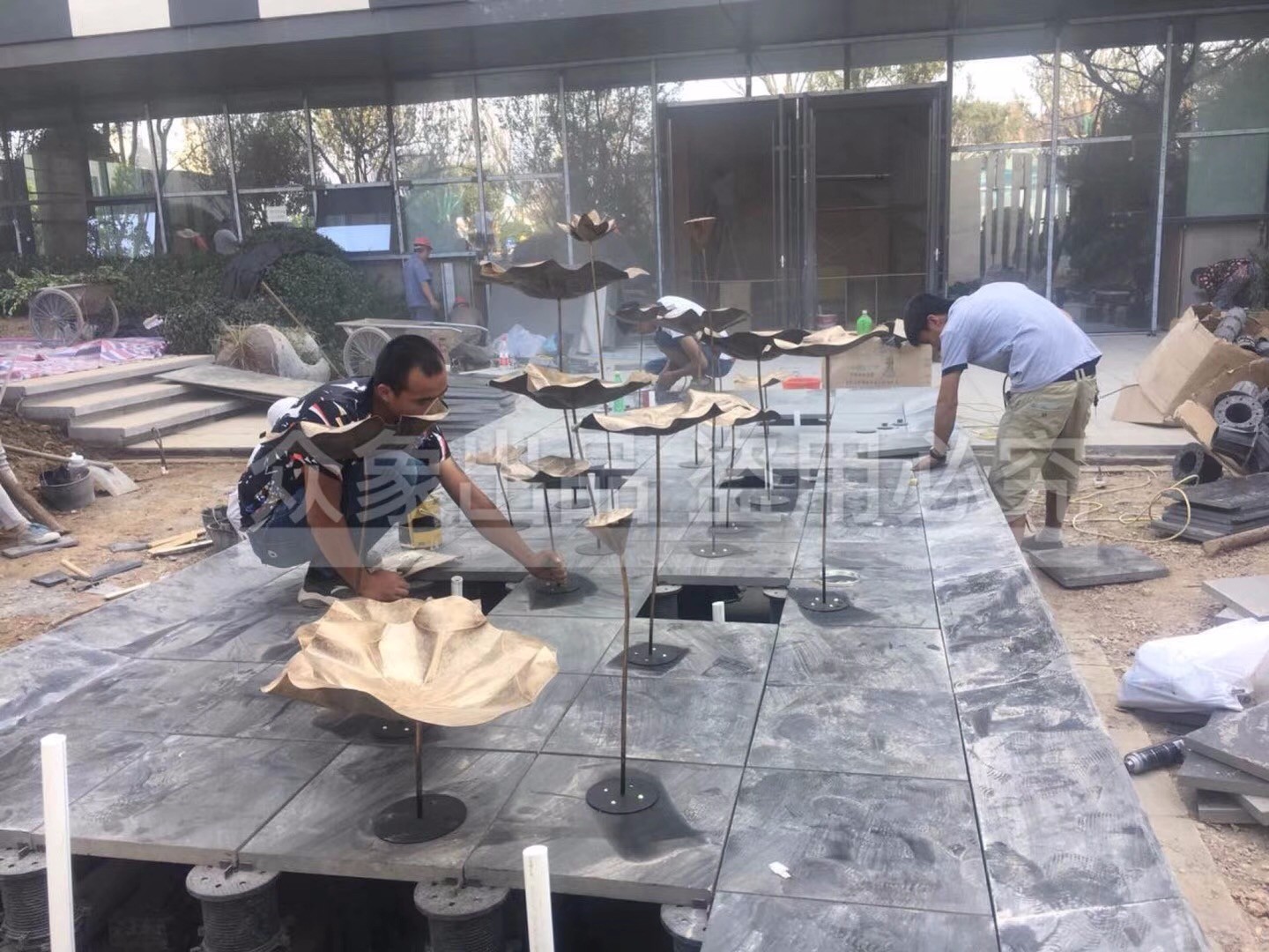 【作品名稱】:不銹鋼仿銅荷葉荷花 【材質(zhì)】:不銹鋼仿銅 【安裝地點(diǎn)】:山東濟(jì)南 【數(shù)量】:1組