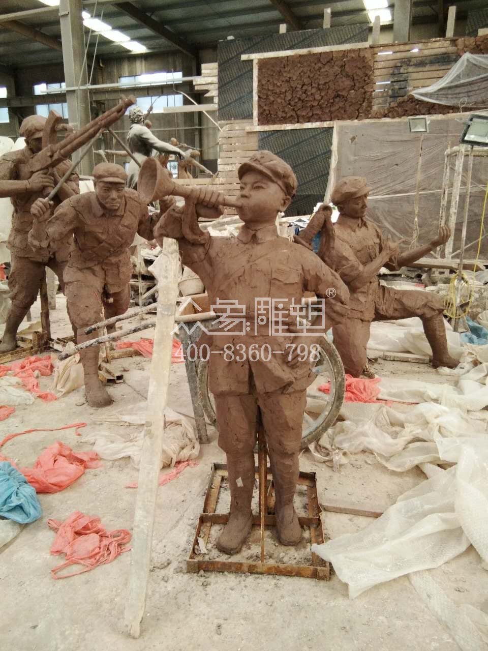 小紅軍泥塑塑造階段。
