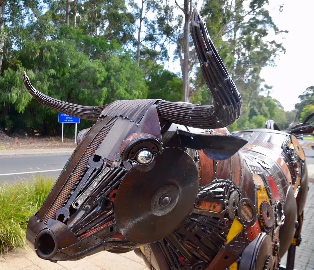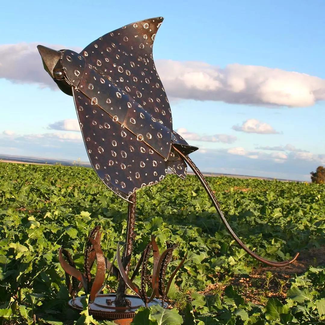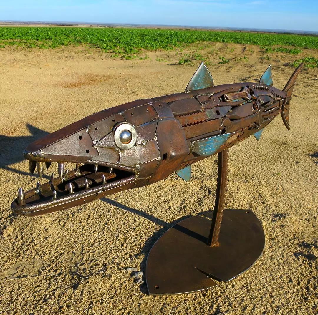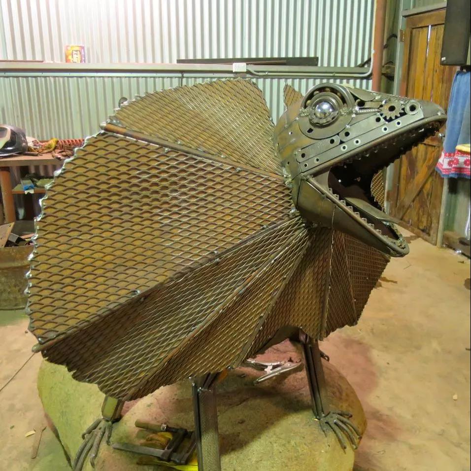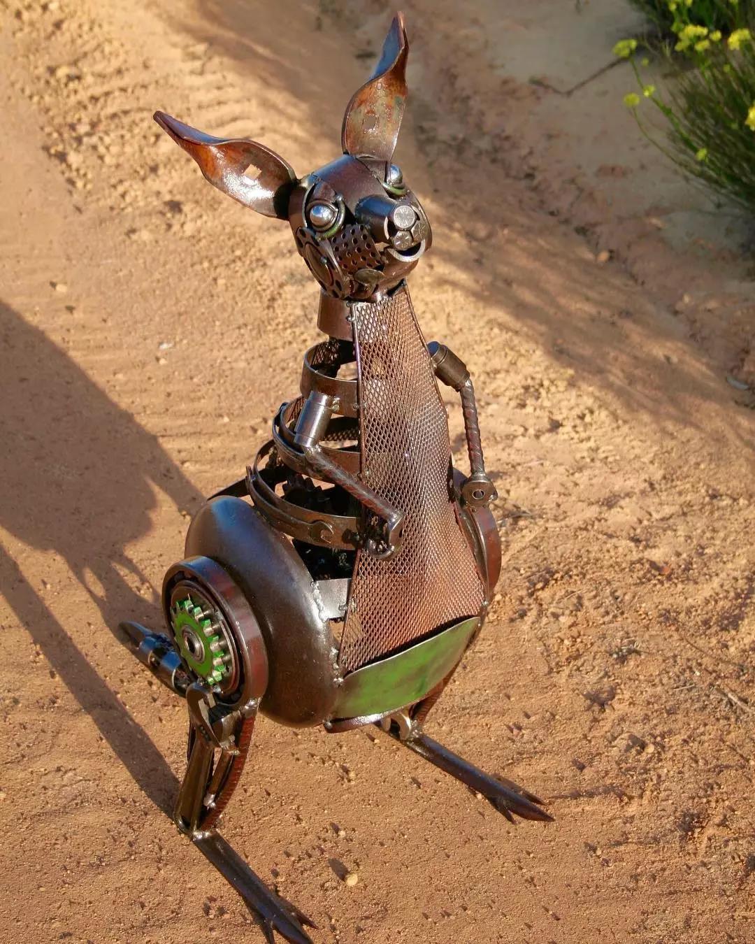 他在舊機器和廢金屬垃圾堆中扒出了可用的再生金屬,創作了這些雕塑作品。