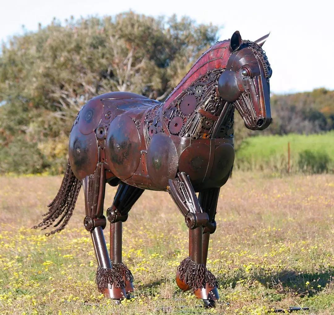 他用錯綜復雜的生銹部件,致敬這些宏偉的動物們。纖細的羽毛、驚人的毛皮質感、復雜的肌肉,給予他們力量和速度。